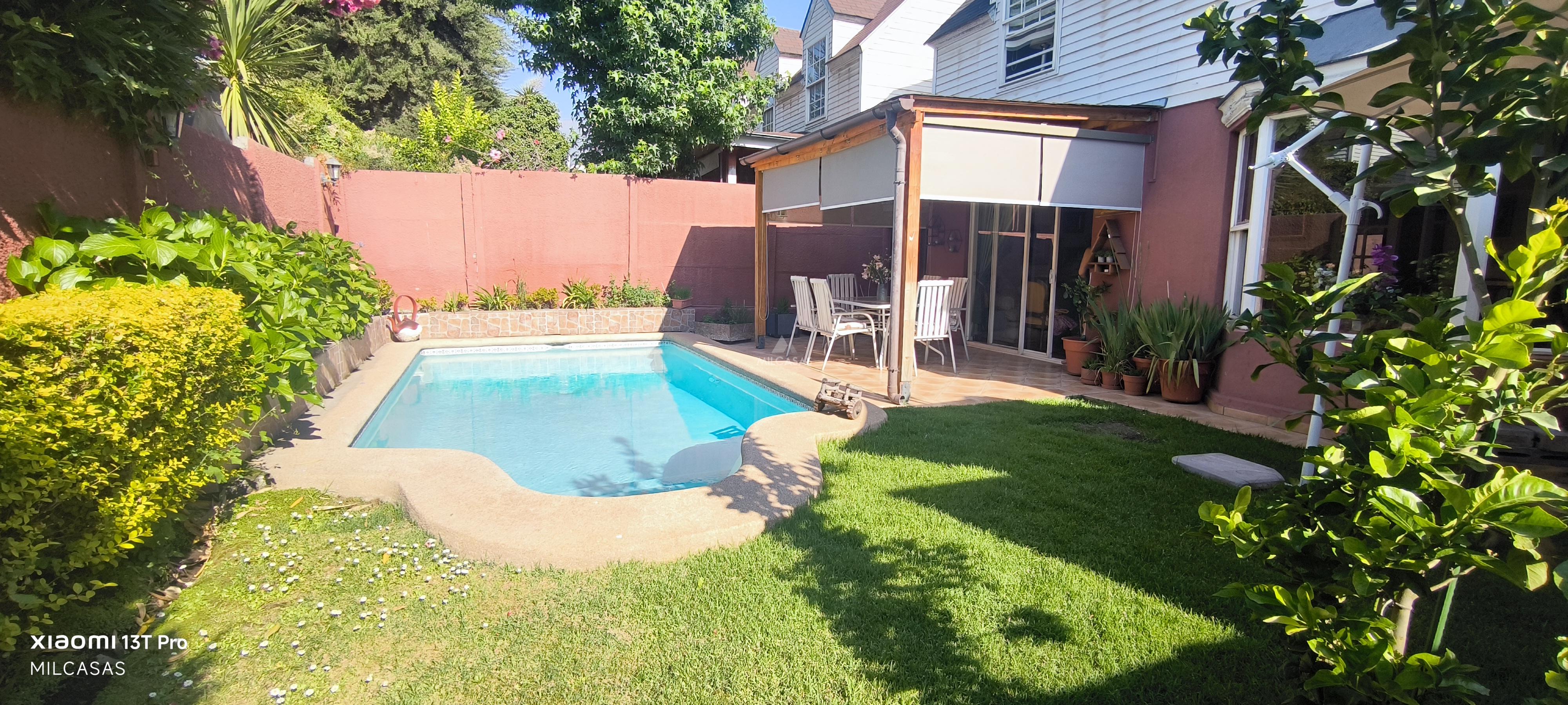 Si buscas tranquilidad, seguridad y un ambiente de barrio auténtico, esta casa es una oportunidad imperdible. Hijuela Sur Peñalolen..... Cercana a colegio Pedro de Valdivia, clínica Quilín de la Universidad de Chile, mall Quilín etc. Ubicada en un sector residencial consolidado de Peñalolén, combina la calidez de un hogar familiar con comodidades modernas y excelente conectividad hacia los principales puntos de la ciudad. Distribución Primer piso Acogedor hall de acceso que da paso a un amplio y luminoso living-comedor, con piso flotante y ventanales que llenan los espacios de luz natural. Desde aquí accedes a un hermoso patio con terraza techada, piscina y quincho, ideal para disfrutar tardes de verano, celebraciones o reuniones con amigos. La cocina, amplia y funcional, invita a compartir. Está equipada con encimera a gas, horno, campana eléctrica y lavaplatos doble. Incluye comedor de diario y logia independiente. En este nivel también se encuentra un baño de visitas y un dormitorio principal en suite, con walk-in closet y aire acondicionado, perfecto para descansar con comodidad. Segundo piso Al subir, encontrarás dos cómodos dormitorios con closet, además de un baño completo con ventilación natural. Una sala de estar con aire acondicionado funciona actualmente como tercer dormitorio, pero se adapta fácilmente a tus necesidades: sala de juegos, home office o zona de descanso. Además, cuenta con un espacio adicional hoy utilizado como bodega, con potencial para convertirse en un tercer dormitorio en el segundo piso. Extras que encantan Estacionamiento para 2 vehículos dentro de la propiedad Piscina con revestimiento que dura aproximadamente 10 años y su bomba recién cambiada, esta nueva. Quincho Terraza techada Jardín formado Aire acondicionado Entorno residencial tranquilo, con colegios, comercio y transporte público cercano Un hogar pensado para disfrutar cada momento Espacios amplios, luz natural y un entorno ideal para formar recuerdos en familia. Una casa lista para que vivas la vida que sueñas