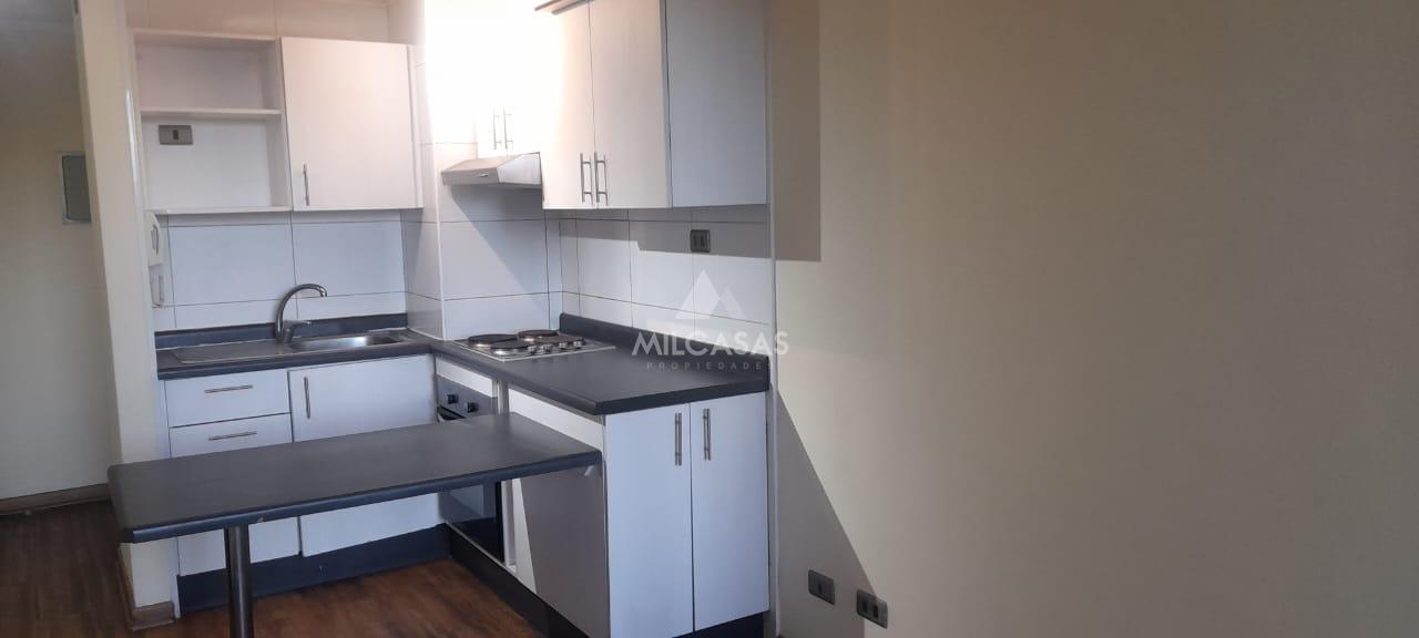 Departamento en Arriendo con una superficie total y útil de 36 m². La propiedad cuenta con dos dormitorios y un baño, ofreciendo espacios funcionales para quienes buscan comodidad en su día a día. El departamento dispone de cocina americana, equipada con muebles superiores e inferiores, y espacio para electrodomésticos. El área de living-comedor presenta piso de madera y ventanales que permiten la entrada de luz natural. El baño está equipado con lavamanos, WC y ducha, con revestimiento cerámico en paredes y piso. El inmueble es una opción adecuada para quienes buscan compartir su hogar en familia.